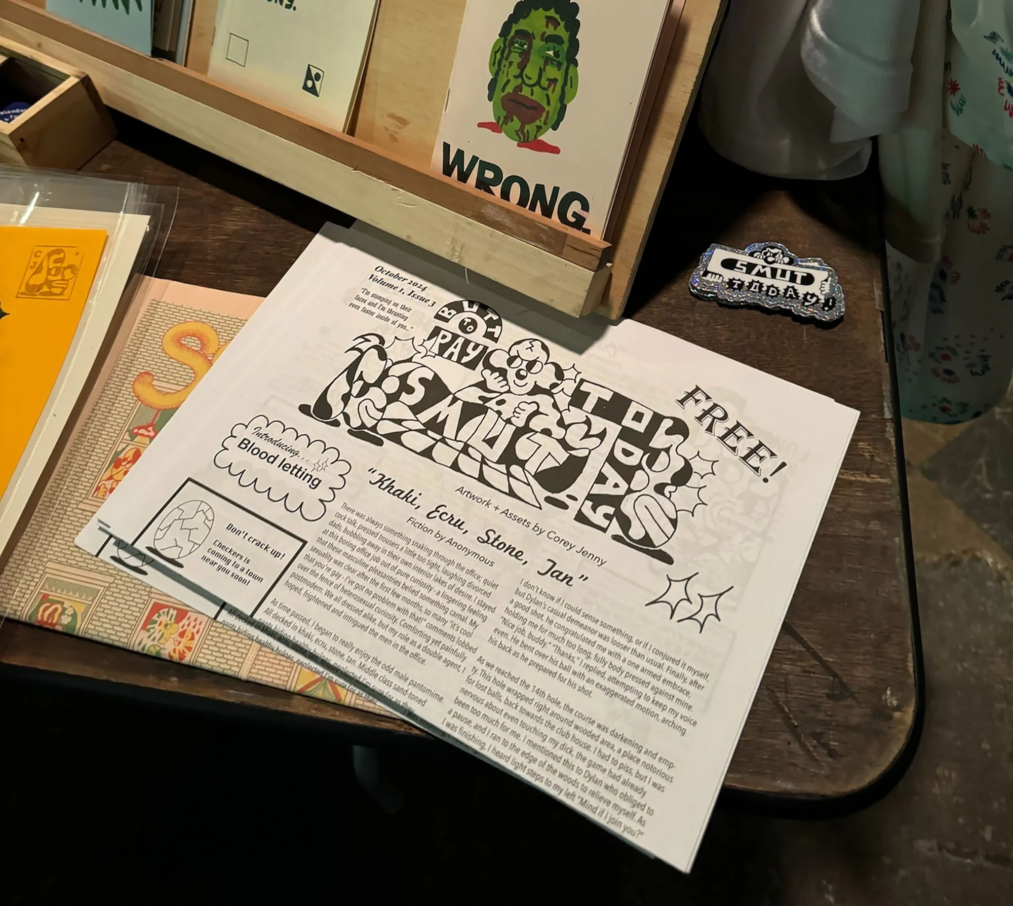 Smut Today at the New England Art Book Fair, at SPACE Gallery, 2024. Cover art by Corey Jennings.